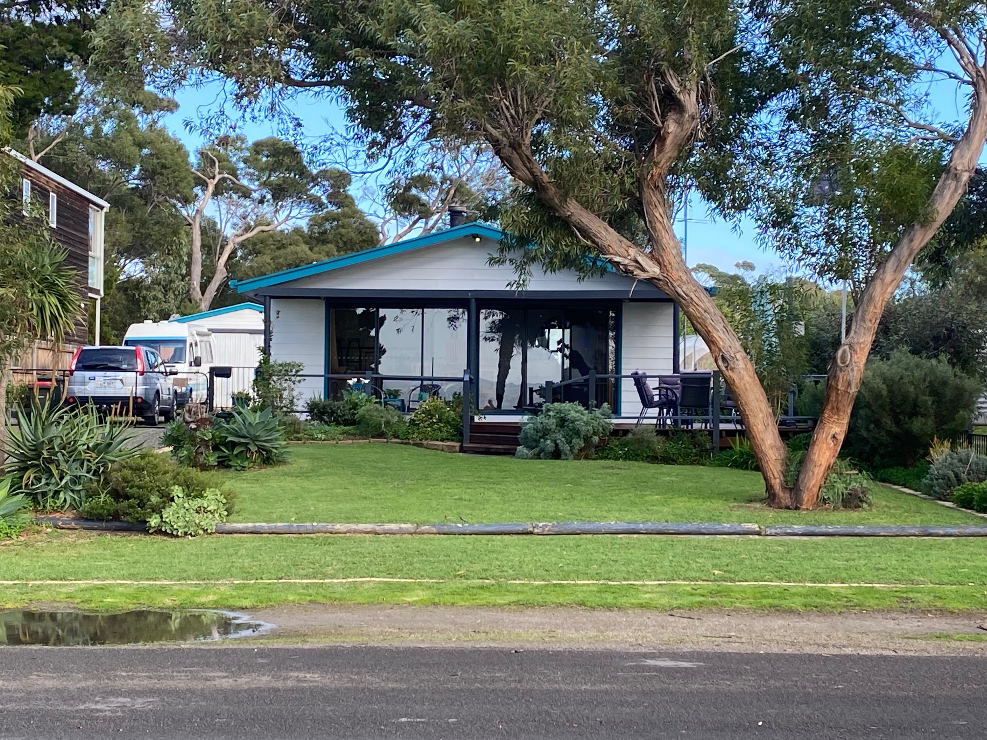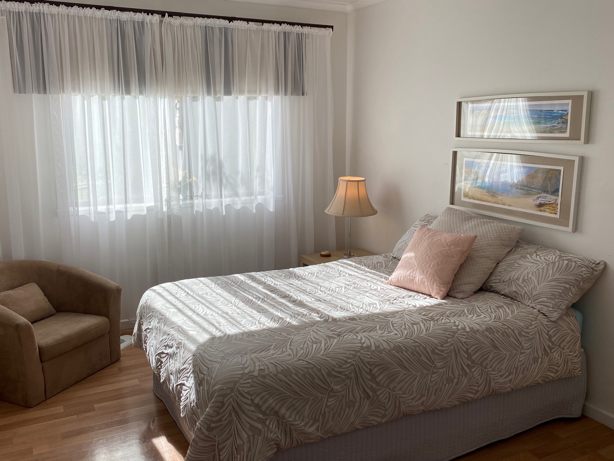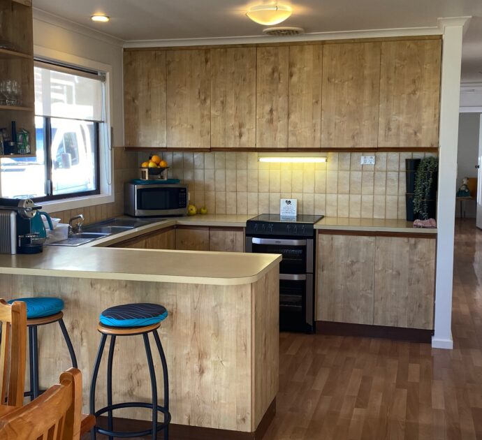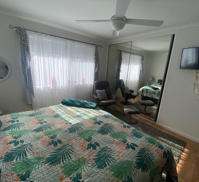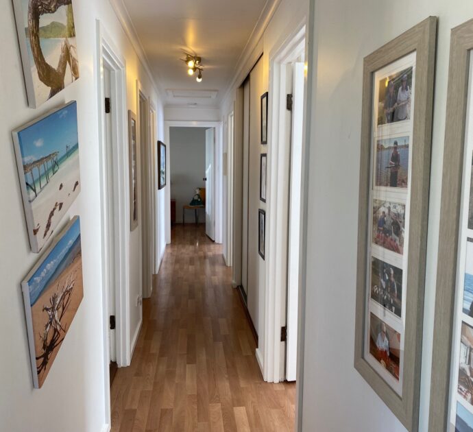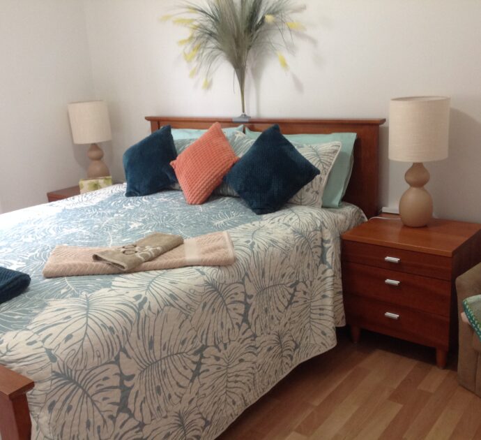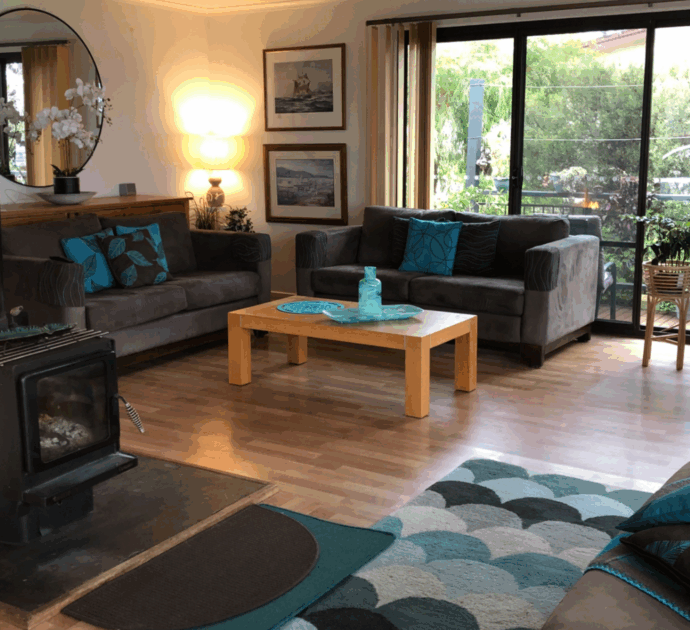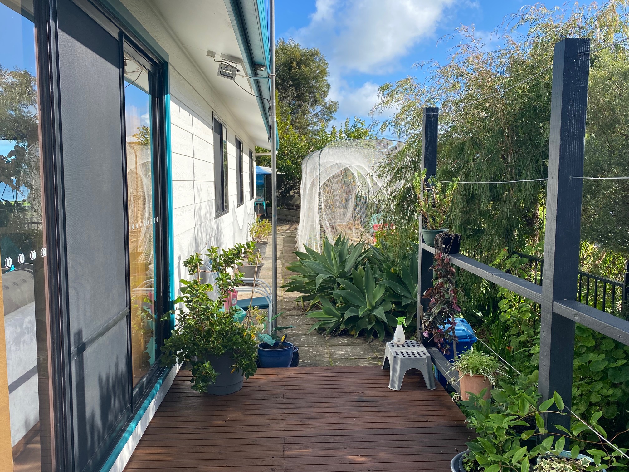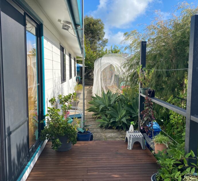 An ensuite off the king master would be a simple extension to do (STCC) with plumbing in the vicinity. Wood fired heater and excellent crossflow ventilation from sea breezes ensure year-round comfort.